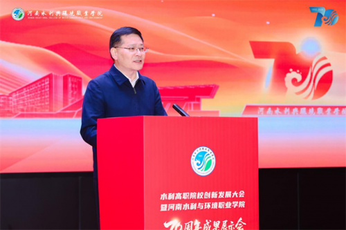 河南省教育厅党组成员、省委教育工委专职副书记刘林亚在致辞中表示,“在职业教育发展进程中,河南水环学院始终立足中原大地,聚焦产业需求,为区域经济发展培养了大量下得去、留得住、用得上的高素质技能人才。希望学校以建校70周年为新起点,承七秩基业,开未来新篇,展现更大作为。”
