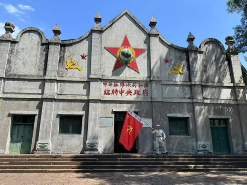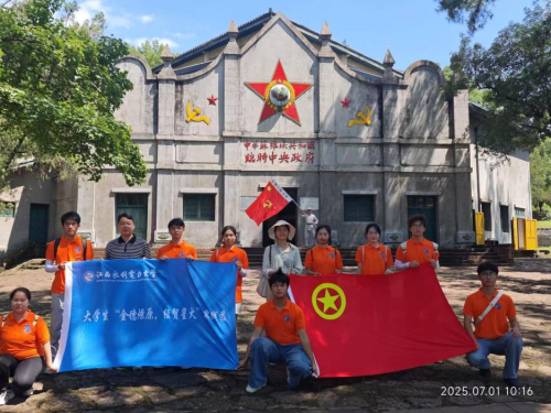 2025年7月1日,江西水利电力大学经济贸易学院 “金穗燎原,经贸星火” 实践团前往二苏大旧址开展红色实践活动。实践团成员走进中华苏维埃共和国临时中央政府大礼堂旧址,实地感悟革命历史。站在这一具有重要历史意义的建筑前,团队成员的思绪回溯至烽火连天的革命年代,深切体会到当年中国共产党人在艰苦环境中建立红色政权、践行革命理想的坚定信念。