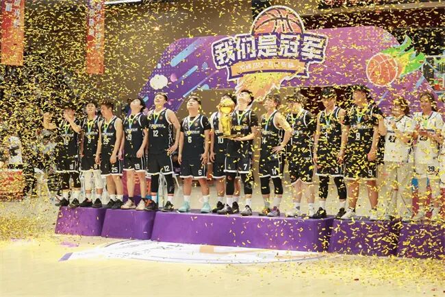 终场哨响,大数据专业代表队成功卫冕总冠军,现场掌声雷动,队员们相拥庆祝胜利。