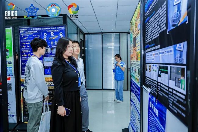 该校参赛师生在大赛项目展示区交流学习
