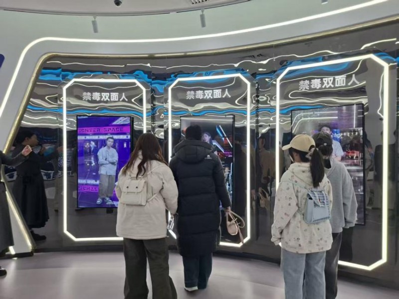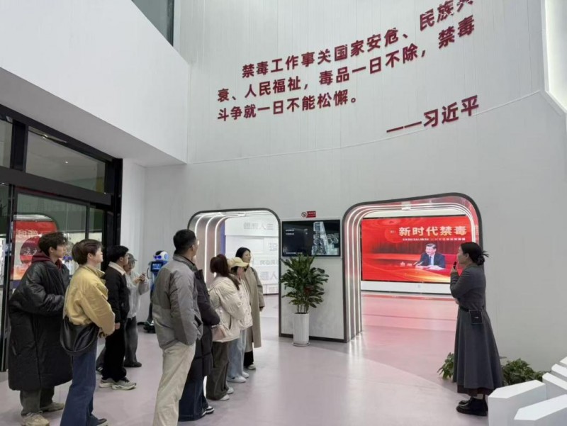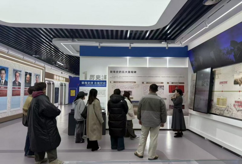 在西安市禁毒教育基地,实践团成员在基地专业讲解员的引导下,依次参观识毒科普区、毒品危害区、禁毒执法区、预防教育区等九大主题功能展区,借助基地实物模型展示、VR沉浸式体验、声光电情景演绎、典型案例剖析等多元化宣教形式,全面厘清传统毒品与新型涉麻精药品的种类、形态及演化趋势,直观认识合成毒品、新精神活性物质等新型毒品的伪装特性与隐蔽传播路径。
