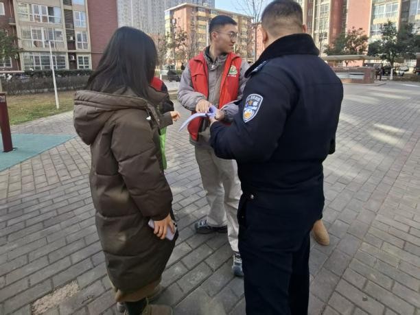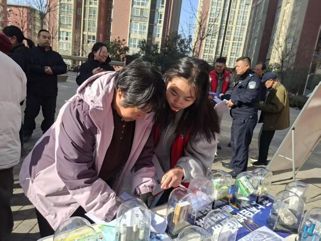 在秦川社区,实践团联合韩森寨派出所民警、社区工作人员构建“三方联动”宣传体系,分工协作、优势互补,形成宣传合力:韩森寨派出所民警结合基层一线禁毒执法案例,以“以案释法”的形式,向居民警示新型毒品的隐蔽危害与触碰毒品的法律后果,重点讲解《禁毒法》《治安管理处罚法》等相关法律法规的核心条款,让居民认清毒品的法律红线;社区工作人员发挥人熟、地熟、情况熟的优势,引导居民有序参与互动活动,为居民发放禁毒宣传手册、图文海报等资料,同时针对老年居民开展一对一讲解,提升宣传覆盖面;西京学院实践团成员立足专业所长,针对不同群体开展靶向宣讲,对青少年群体,用浅显易懂的语言讲解毒品成瘾机制,传授“看外观、辨标识、拒陌生、不尝试”的新型毒品核心辨识技巧,通过趣味问答的形式引导青少年主动学习禁毒知识;对中老年居民,重点讲解新型毒品的伪装形态,结合实际案例提醒居民提高警惕,拒绝陌生人提供的不明食物、饮料。