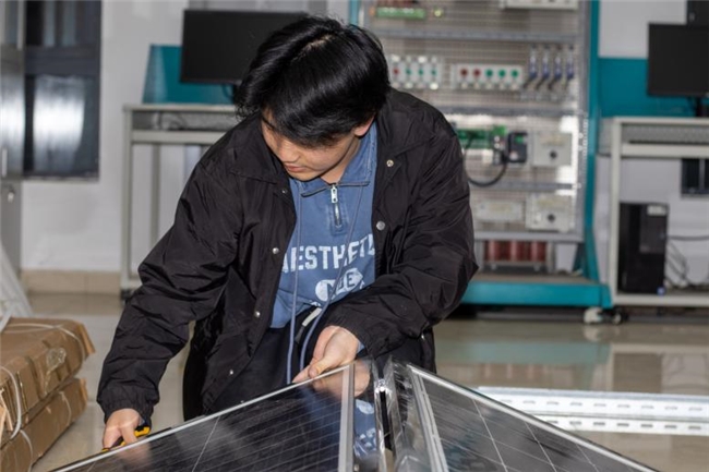 随着缩比模型在实验台上完美演绎“折叠—展开—收起”的流畅动作,团队迎来了向实体样机转化的关键时刻。在加工车间与装配区域,团队成员化身能工巧匠,以精湛的技艺和严谨的态度,投入到光伏组件的定制化焊接与装置的整体集成工作中。光伏组件的焊接,不仅是对导电性能的极致追求,更是对耐久性与稳定性的严苛考验。团队成员身着防护装备,手持电烙铁,在通风橱前一丝不苟地完成每一个焊点的精细处理。与此同时,机械结构优化小组也在紧锣密鼓地工作着,从支撑杆的精准切割到整体框架的水平校准,每一处细节都力求尽善尽美。为增强装置的抗风能力,团队还创新性地增设了可调节地钉与配重系统;为提升折叠操作的便捷性,引入了气垫导轨辅助技术。最终,经过数月的辛勤耕耘,AI智能折叠式多能协同光伏电站样机傲然屹立,成为团队智慧与汗水的结晶。
